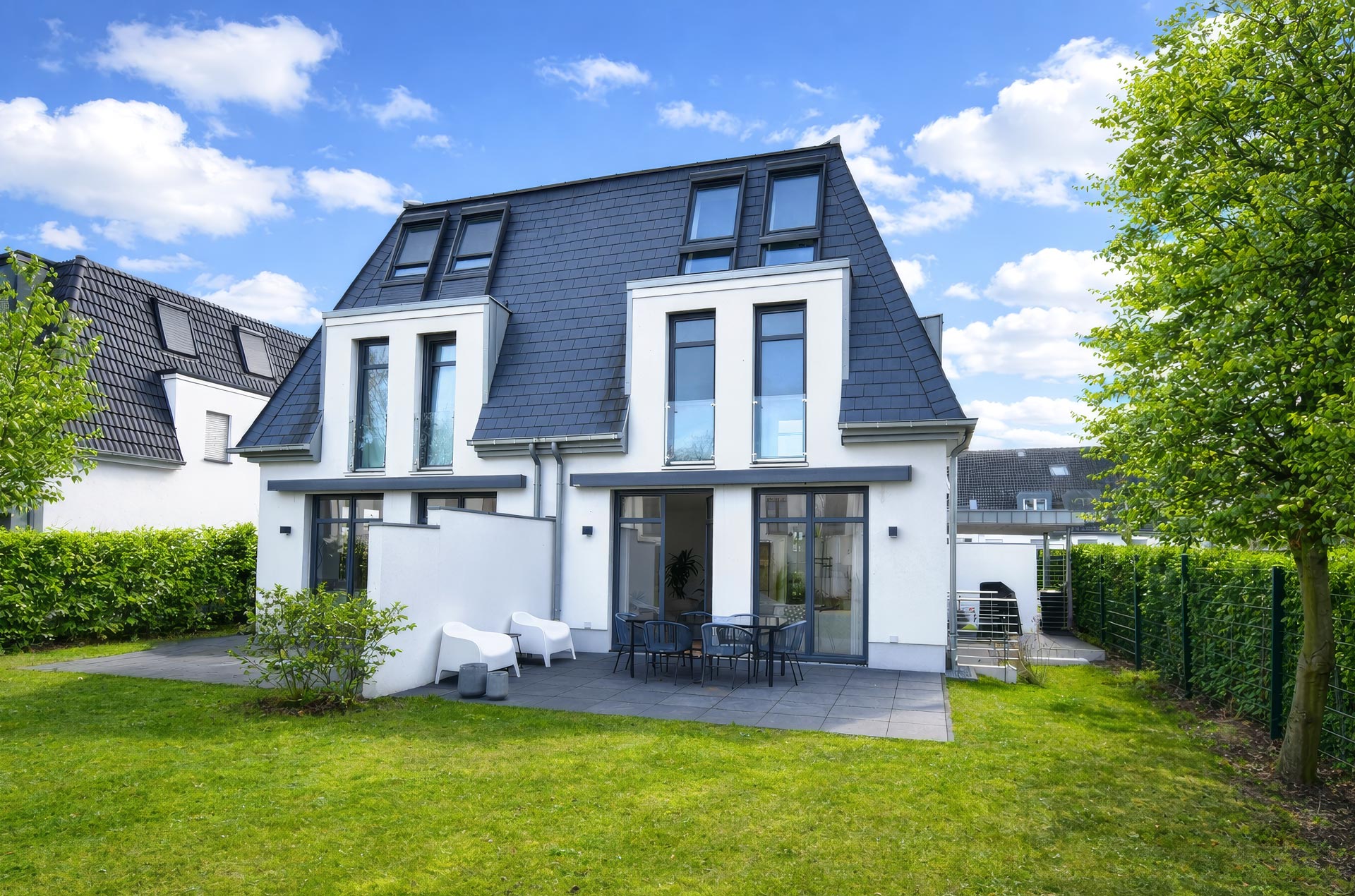 Diese großzügige und exklusive Doppelhaushälfte erfüllt auf Basis zeitlos moderner Architektur höchste Ansprüche an Komfort, Qualität und Wohnästhetik. Die hochwertig konzipierte Doppelhaushälfte präsentiert sich als Premium-Immobilie mit Format und bietet ein ideales Zuhause für die anspruchsvolle Familie.
